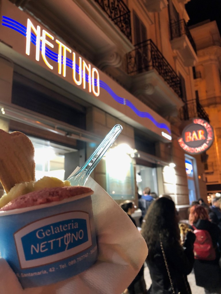 Perfect for an afternoon stroll under the sun or an evening stroll after an amazing southern Italian meal along the water, Nettuno is where Salerno enjoys their gelato. They have amazing flavors from both the cream-based gelato and sorbetto sides of the spectrum, and you will be spoiled for choice after you pay for your gelato and bring the ticket to the gelato case (that’s the order, pay first and then pick your gelato!). My choice is the PERFECT mixture of lemon and strawberry gelato to go along with an afternoon stroll along the water. Remember, any gelateria worth its salt will have metal containers, natural colors, the top of the gelato will be below the rim of the container and will ABSOLUTELY let you get at least 2 flavors in one cup or cone (I’m looking at you, disappointing Venetian gelato shop). If I am visiting after dinner for a perfect end to my evening, I will choose their Nutella flavor with almost any of their stellar flavors like fior di latte or stracciatella. Their Nutella flavor is UNMATCHED in most of Italy with its dark brown color, where I have only seen Nutella mixed into a plain base flavor in most of the gelaterias in most of my travels. If you want to level up your gelato game, I recommend selecting some of the most delicious looking cream-based gelato and getting it made into a brioche gelato sandwich (“gelato con brioche”), grab some napkins, pick a bench on the lungomare, and try to devour it before it melts away!