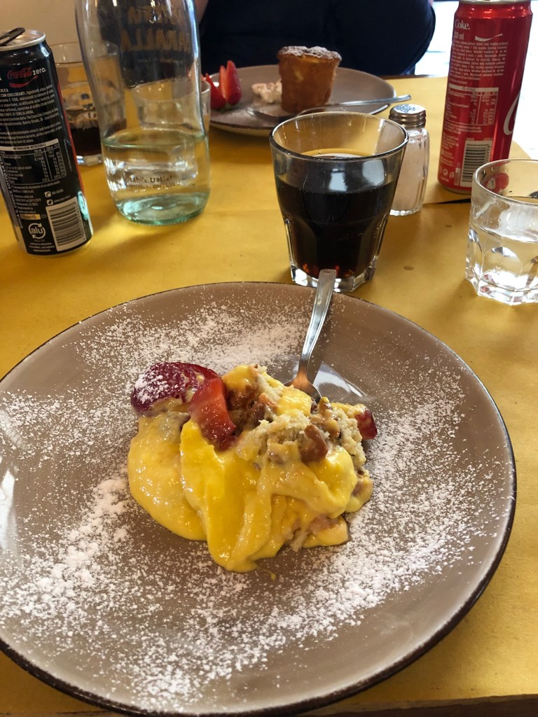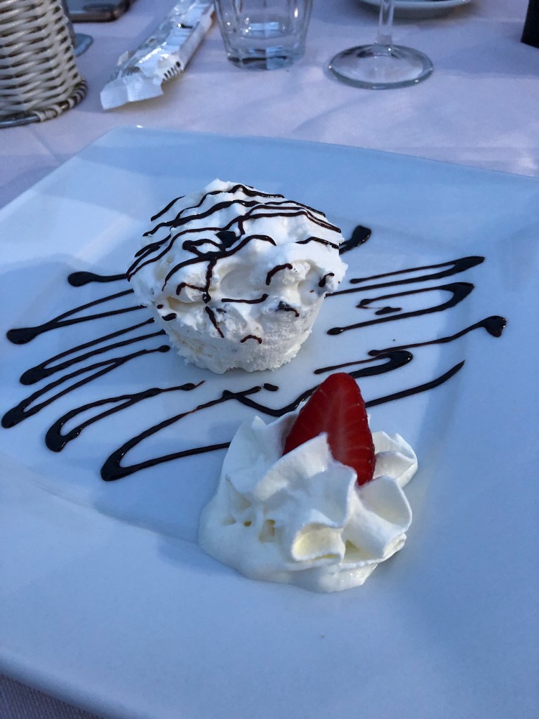 We then moved onto dessert, and when I saw the word “Meringata” on the menu, I said “just a meringue?” and the waiter explained that it was a meringue frozen with gelato, and I said, “I MUST HAVE THAT!”. It was all I had dreamed of and more with the fluffy meringue seemingly piped into a cup along with the gelato so that each spoonful included both delicious treats. If you want a delicious meal along the lakeside, this is the place to go.