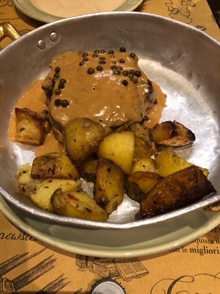 To continue with my perfect meal, I usually split the filetto al pepe verde with my dining companions. Following the tradition of great steak in Florence, this steak covered in a perfectly peppered sauce and cooked to perfection.