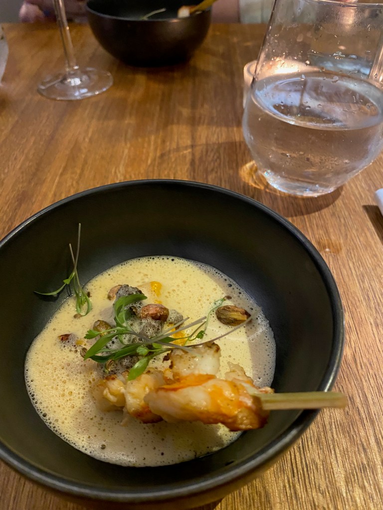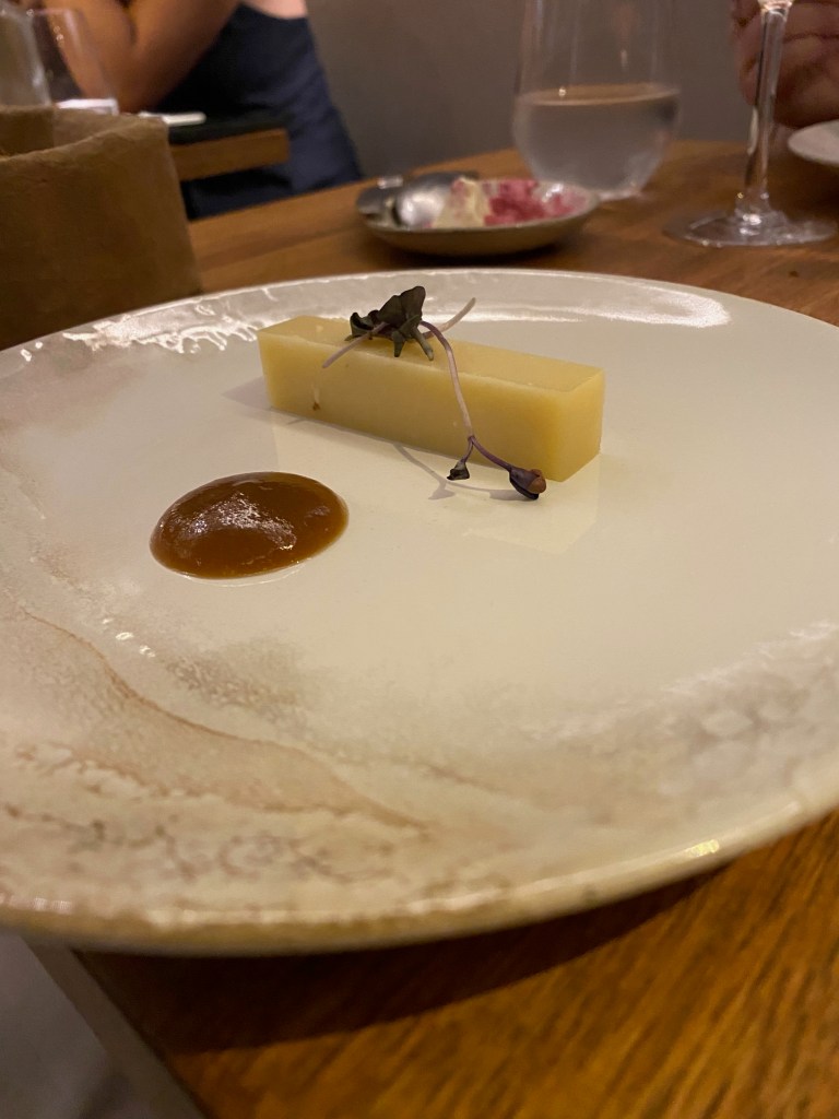 Nuances is a modern style restaurant that ONLY has a tasting menu for 55 euro. In the US, I would say “oh cool, tasting menu,” but when on vacation, and for such a cheap price of 55 euro, I said “OH COOL! TASTING MENU!” and booked it right away. The most exciting part about this restaurant is that even with the tasting menu, they don’t even give you the menu to peruse, they just start bringing out food! We told them we had no food allergies or restrictions, and I decided that I would eat whatever they put in front of me. They would bring out the dishes, have us eat them, and then when they came to collect the plates, they would say “so, what did you think that was?” We would then try to guess, sometimes HORRIBLY, then they would tell us all the intricacies of the dish and its ingredients. I’m going to walk you through our AMAZING meal, with ALL the pictures and as close to the description that we understood from the server.
