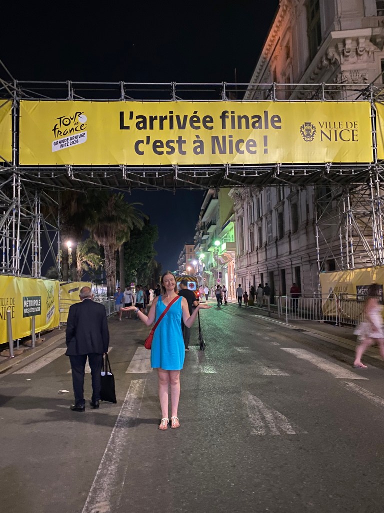 We finished our meal, finally able to relax into our trip of a lifetime and wandered home along the Promenade des Anglais with all the people celebrating the arrival of the Tour the next day. We realized we missed out on the celebratory fireworks and drone show along the water, but the amazing dinner was worth it. Strolling down the time trial course set for the race into the late evening was a perfect way to end our first night in Nice.