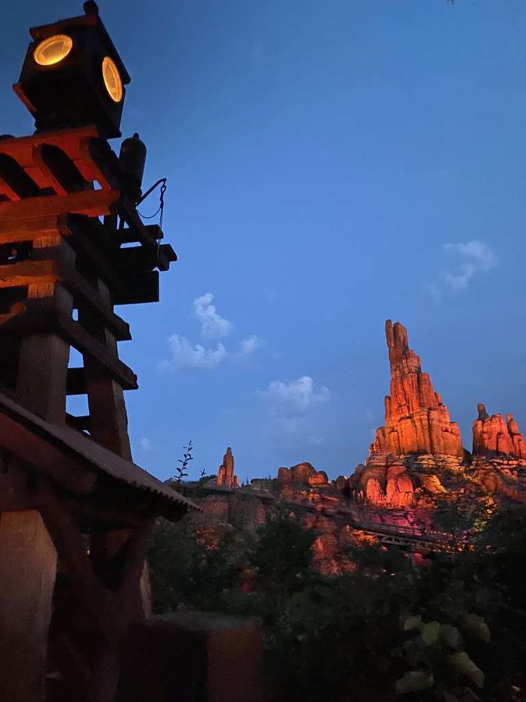 We did some more wandering through the magic, like through Alice’s Labyrinth to the top of the tower overlooking Fantasyland and it was almost time for our day to end. We did manage to squeeze in one more Phantom Manor ride as well as a ride on Big Thunder Mountain close to sunset which was PERFECTION. Everyone should ride it then; I can’t imagine how awesome it would be at nighttime!