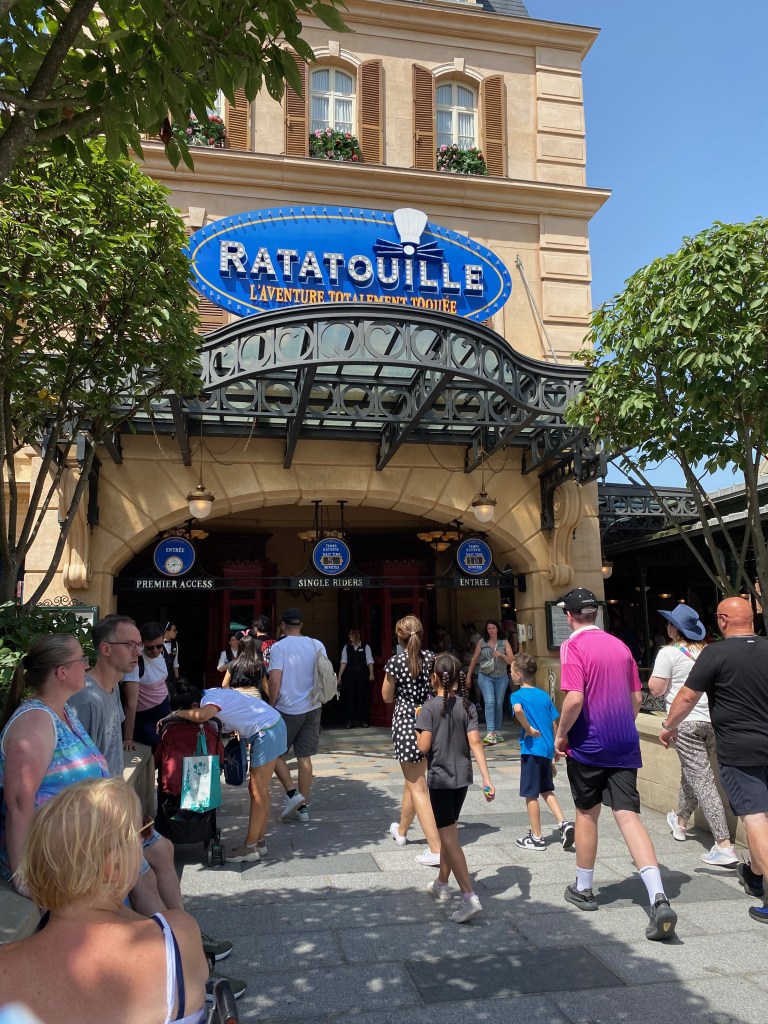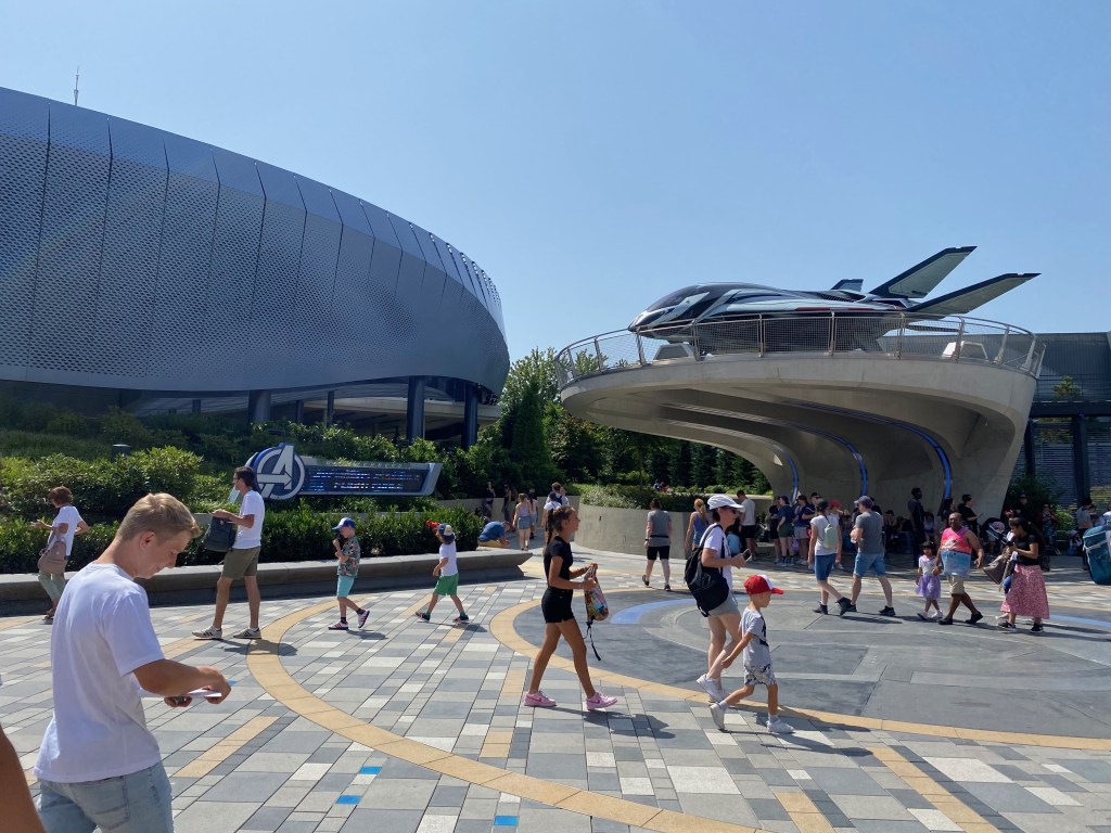 We jumped on Crush’s Coaster (the Premier Pass saved us a TON of time on this slow loading coaster) and the ORIGINAL Ratatouille and then headed to join with the other superheroes and rode Avengers Assemble: Flight Force, the old Rock n Roller Coaster that has been rethemed.