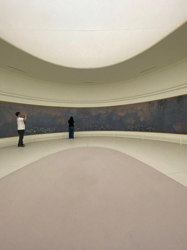 We engineered a pause in our Olympic events for a few days and arranged tickets to the Orangerie, including the galleries specifically meant to house Monet’s Water Lilies paintings. The museum was situated just STEPS from the Concorde Urban Project venues, so close we had to go through Olympic security protocols. Since we were a few of the first people inside the museum, it was nice and calm and a bit more like it was meant to be enjoyed, for that I was grateful for our timing.