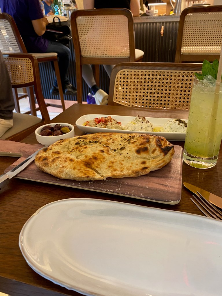 My next stop (after a stroll through Hell’s Kitchen to soak in the atmosphere of the beautifully sunny day!) was Frena, a new restaurant from the chef of one of my favorite restaurants Taboon, that sadly burned down a few years ago. This modern Israeli/Middle Eastern restaurant specializes in cooking dishes in a “frena”, the middle eastern shared oven which brings the community together, which this restaurant has as well! I knew what I wanted to eat even before I made the reservation, and it lived up to the hype.