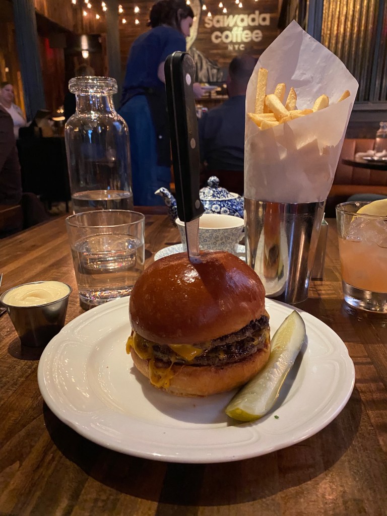I headed down to Au Cheval, sandwiched between Chinatown and Tribeca with designs on their famous burger. They are an institution in Chicago, so much so that they opened a separate counter service restaurant to manage demand. Knowing New York wanted a taste, they found themselves in an old brick building which they complemented with leather and metal furnishings to create the perfect “modern American” feeling in the restaurant.