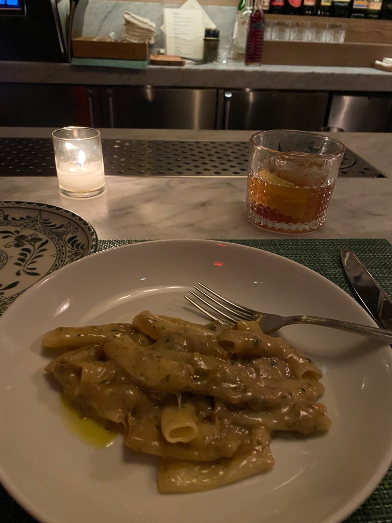 I had never tried it while in Italy, and it BLEW ME AWAY. The taste was something I hadn’t expected, yet it was so creamy yet full of flavor that I want to eat it all the time. I scoured the menus in Atlanta, and I think I found a restaurant that might have it, so I shall be giving you a full report soon. We finished the meal off with a fresh seashell shaped sfogliatelle, I had the bartender pick his favorite filling and then walked off the decadent meal into the damp evening. My New York weekend was coming to a close, ending with the perfect meal.
